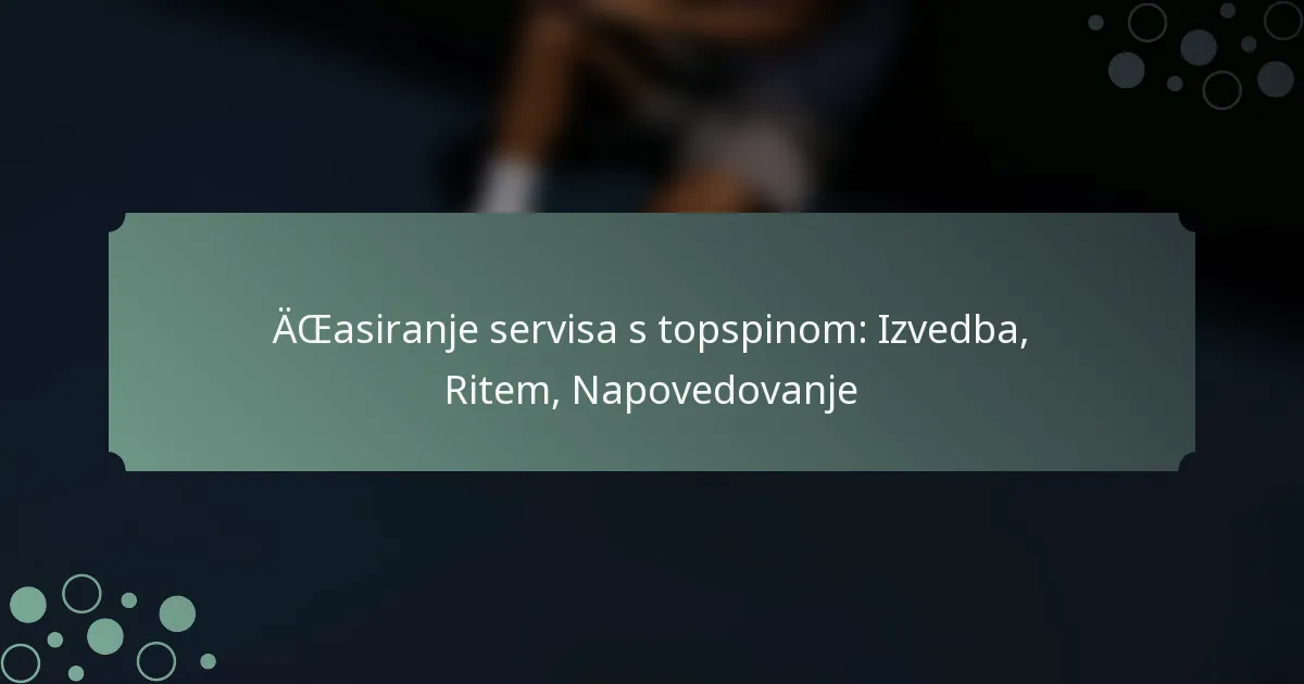 Izvajanje servisa s topspinom vključuje vrsto usklajenih gibanj, ki ustvarjajo spin in hitrost, kar otežuje vračanje nasprotnikom. Ključni elementi vključujejo prijem, postura, gibanje zamaha, nadaljevanje in čas, ki vsi prispevajo k učinkovitemu servisu.